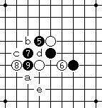 黑7于H6点组双二。白8有a、b、c、d等防守,e点必败。 |