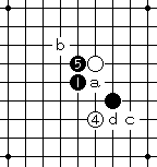 黑5选定于H9点,白6防于a点是唯一防守,其余点皆负。
