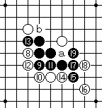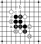 白10变化,黑11至黑15有a或b、c的双杀。