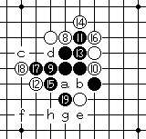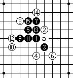 白14如果防守于E7,黑G10。 白14如果防守于F7,黑G7。