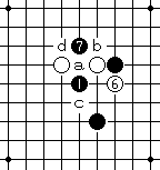 黑9着于G11点。白10有a、b、c、d四种防守。
