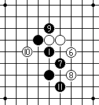 日本《连珠世界》1986年1月号,黑:佚名八段,白:坂田,黑7于I7点斜活三,错招,黑9组角,败招,白22黑投了。