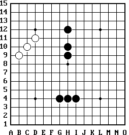 图11 第9条 其他9.1 黑方和白方 9.1.1 黑方 执黑棋一方的简称。 9.1.2 白方 执白棋一方的简称。 9.2 终局 对局结束。 9.2.1 胜局 有一方获胜的对局。 9.2.2 和局 分不出胜负的对局。 9.3 轮、场、局 9.3.1 轮 参赛的各队(团体赛)或各名棋手(个人赛)普遍出场比赛一次(个别轮空者除外)称一“轮”。 9.3.2 场 两名棋手之间完成的两局制或多局制的一次比赛称为一“场”比赛。 9.3.3 局 两名棋手之间完成的一盘比赛称为一“局”比赛。 9.4 Pass(放弃行棋权) 棋手放弃行棋的权利。 9.5 轮走方 当前应该行棋的一方。 9.6 非轮走方 当前不该行棋的一方。 9.7 指定开局 对局开始后由黑方从26种开局(附录一)中任选一种开局摆在棋盘上,即黑方决定了前三个棋子落于何处,其中包括两个黑子和一个白子。 A. 黑方第1子(黑1)应落在棋盘天元处。 9.8 交换 指特定的开局模式中,一方有权在对手落子后选择与对方互换黑 白棋身份从而改变后续行棋权。 9.9 复盘 对局双方或单方将本盘对局全过程的再现。 第三章 行棋规则第10条 先后手确定每局棋先手者均执黑先行。 10.1 确定先后手的方法 10.1.1 一般可由编排软件抽编确定先后手。 10.1.2 一局制比赛,只有两名棋手对赛时,猜先。 10.1.3 两局制或两局以上制比赛,均采用分先方法确定先后手。先按一局制先后手确定方法,确定第一局的先手,以后各局则互换先后手。 10.1.4 团体赛时先手方队的奇数台为先手方,后手方队的偶数台为先手方。 10.2 先后手错误纠正 不论是出自何种原因,一经发现对局双方先后手有错,如发生在双 方第一回合结束前或开赛 5 分钟内应及时纠正错误,按正确先后手顺 序重新开始对局。如发现错误在双方第一回合结束之后,或比赛开赛已 经达 5 分钟,则比赛继续进行,终局结果有效,棋手不得以此作为要求 重赛的理由。裁判员纠正先后手错误时,应复原双方棋钟。 10.3 猜先方法 开局前棋手位置坐定后,双方各握黑白棋子若干于手中,如合计数为奇数,则握黑棋子方先行。合计数为偶数则双方变换黑白棋。 第11条 开局11.1 塔拉山口-10开局 A. 执黑方在棋盘天元处放第1子,另一位选手有权交换。 a.选择交换 E. 之后双方轮流落子,直到对局结束。黑棋有禁手白棋无禁手。 11.2 五手两打开局 A. 执黑方摆出26种指定开局之一(见附录一)。另一位棋手有权交换。 11.3 其他开局(见附录二) 第12条 落子12.1 对局双方各执一色棋子,黑先、白后交替落子,每次只能落一子(开局阶段和行使pass权除外)。 12.2 棋子应直接落在棋盘的无子交叉点上,棋子落定后,不得向其它点移动,不得从棋盘上拿起另落别处。 12.3 棋手行使pass权需口头告知对手。 12.4 轮走方的棋子不慎掉落于棋盘,经对手同意后,允许其拣起后任选着点。如双方不能达成一致意见,则由裁判长裁决。 第13条 记录13.1 比赛中双方棋手必须做对局记录,有些比赛可视具体情况免于记录。 13.2 双方棋手在对局中要在规定的记录纸上清晰、准确、完整、及时的逐着记录双方行棋着法。黑棋用奇数画圈记录,如:①、③、⑤、⑦、⑨……;白棋用偶数记录,如:2、4、6、8、10……。对局双方应以自己看到的棋子位置进行记谱,禁止预先写下要走的着法(封棋时除外)。 13.3 比赛记谱纸必须放在裁判能够看到的位置,以便裁判随时检查棋手已经完成的着数。 13.4 裁判员在对局过程中或终局核对记录时,有权要求某方棋手誊清或补正记录,棋手不得拒绝。在对局过程中的誊清或补正要用本方的用时。 13.5 在一局中每方棋手各有一次机会向裁判提出可以借用对方记谱纸补全着法,对方不得拒绝,但他必须用自己的时间,并且必须把记录纸还给对方之后才允许走下一步棋。 13.6 如果双方棋手的记录同时出现较多错漏,已无法互相参考,裁判员一经发现,可立即停钟,要求双方尽快用复盘法补全记录,因此而消耗的时间由双方共同承担。 13.7 在包干制用时比赛中,如果一方棋手所剩的用时离本方时限不足5分钟,该棋手有权在终局前不做记录,终局后必须尽量补全记录。 13.8 快棋赛对局中棋手可不做对局记录。 第14条 计时14.1 比赛时限 14.1.1 包干制时限 比赛双方每方拥有一个固定的比赛用时,如在固定用时内没有结束比赛,则先到达时限的选手判负。 14.1.2 加秒制时限 比赛双方每方拥有一个固定的起始用时,之后每走一着棋加相应时间,如果在用时范围内没有结束比赛,则先到达时限的选手判负。 14.1.3 共用时限 指对局开始后,不启用双方独立计时钟,而是为对局设定一段统一的“公共时间”,由双方共同使用。 在一些比赛中,也可采用对局双方先共用时限,共用时限结束后采 用包干制时限或加秒制时限。 在采取双方共用时限方法时,裁判有权给行棋过慢的棋手,或有故意拖延时间嫌疑的台次上随时加放棋钟,每方时限为所剩共用时间的一半。 在读秒时间内,若比赛棋手离席,裁判应按规定继续读秒计时,超时判负。 14.2 比赛计时 规定的比赛时间一到,应立即开动黑方棋钟,在对局过程中,应在每方行棋后按停己方棋钟,开动对方棋钟。 14.3 迟到计时 14.3.1 赛前比赛规程或者补充规定应写明迟到时限,如果没有则默认为零迟到(无迟到时限)。棋手晚于迟到时限到达棋桌将被判负,除非裁判另有其他决定。 14.3.2 在比赛开始而对局者一方不在的情况下,即使在席的一方不行棋,对方不在席的表也要打开。如果比赛开